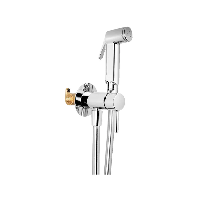 - Complete Set: This is a complete shower set that includes a hand shower (bidet sprayer), a flexible hose, and a wall-mounted body with an integrated holder.